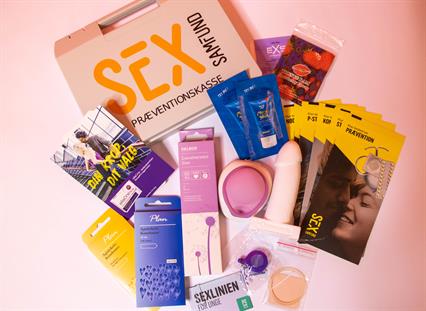 Indeholder bl.a. kondom, penisattrap, p-plaster, spiral, nødprævention, graviditetestest, glidecreme og pjecer.